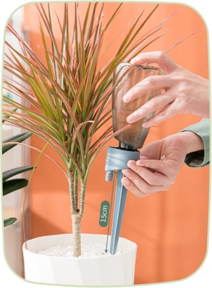 • Snadná instalace: bez nářadí, stačí našroubovat na láhev a zapíchnout do půdy.