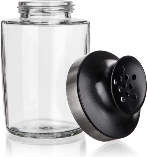 Čiré sklo nabízí kontrolu nad obsahem, nerezové víčko 18/0 s černým detailem dodává moderní vzhled a odolnost.