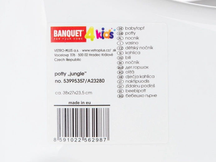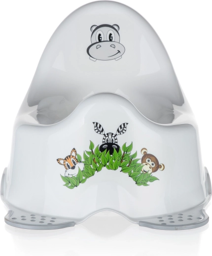 Praktická zvýšená středová část minimalizuje riziko nechtěného rozlití. Lehká plastová konstrukce usnadňuje manipulaci i přenášení, veselá zvířátka s motivem Jungle motivují děti k používání nočníku.