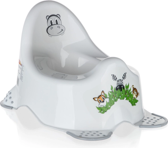 Dětský nočník Jungle v bílé barvě je navržen pro bezpečné a pohodlné učení na toaletu. Díky široké základně s protiskluzovými prvky je velmi stabilní, anatomicky tvarované sedátko a vysoké opěradlo zajistí správnou oporu a komfort i při delším sezení. Hladký, hygienický povrch se snadno udržuje v čistotě.