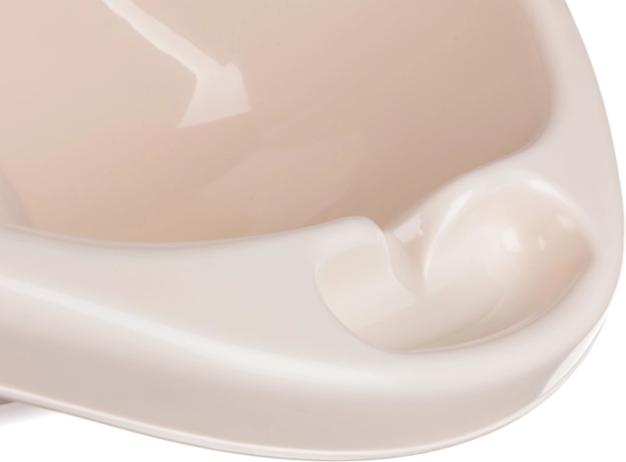 Tvar vaničky jemně podpírá záda a nohy dítěte, čímž napomáhá správné poloze a pohodlnému koupání bez klouzání.