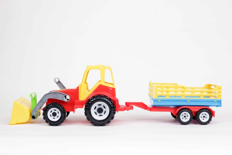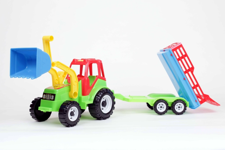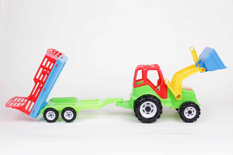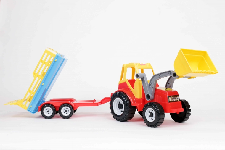Pohyblivá lžíce umožňuje nabírat písek, kostky nebo drobné hračky a převážet je přímo v přívěsu.