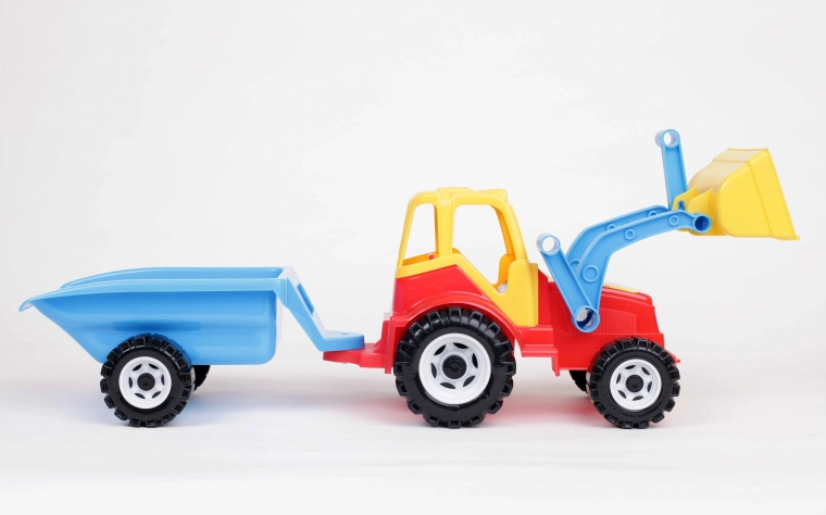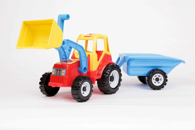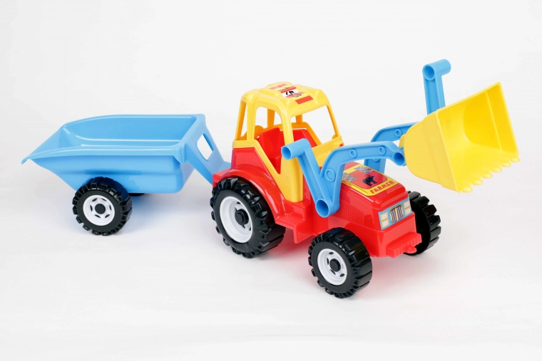 - Plastový traktor s předním nakladačem a sklopným přívěsem