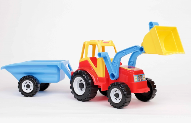 Traktor je vyroben z kvalitního plastu a z originálních, zdravotně nezávadných barviv bez sloučenin těžkých kovů, takže je ideální pro dětské ruce a každodenní hraní. Robustní kola zvládnou různé povrchy a funkční lžíce podporuje kreativní hry na pískovišti i doma.