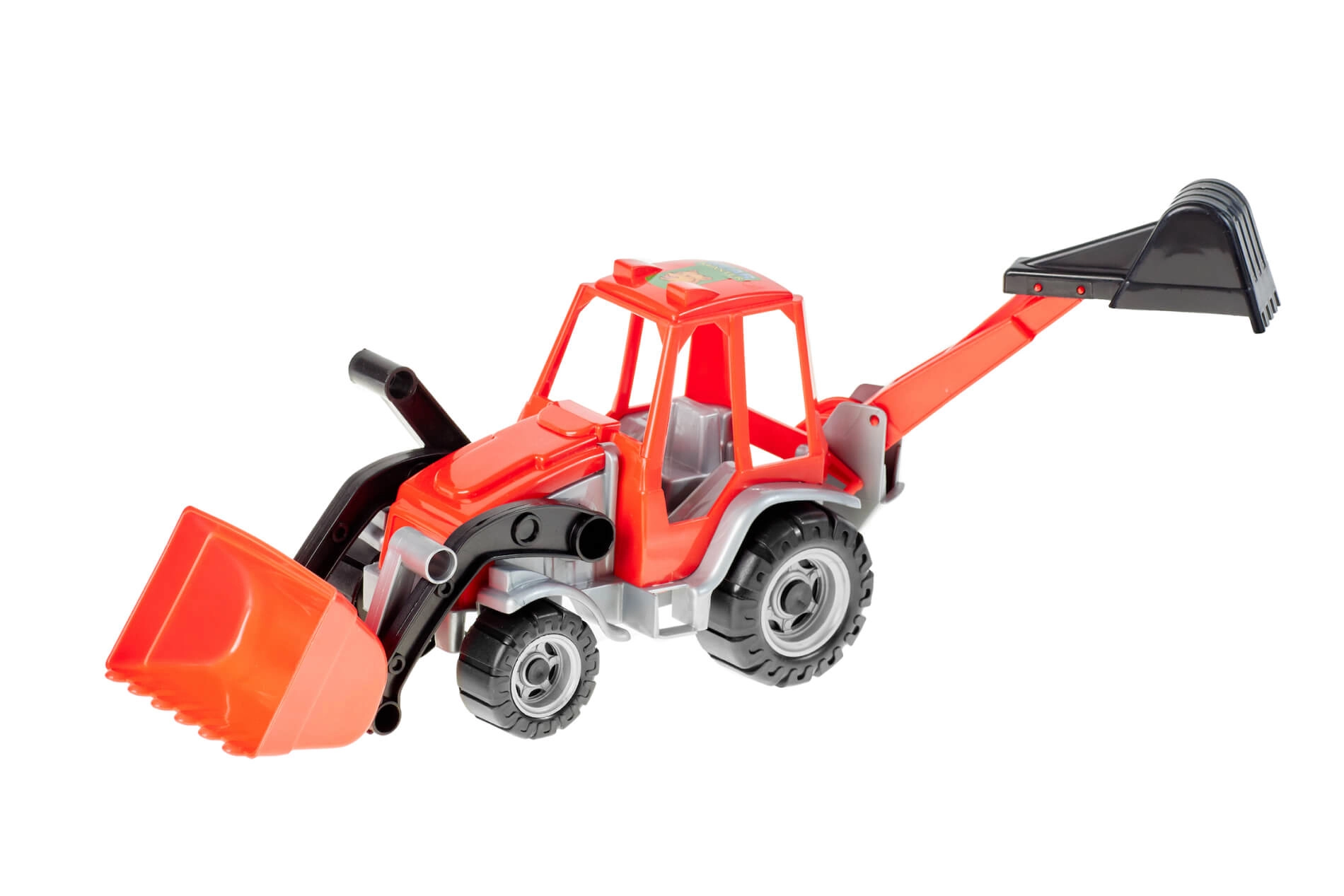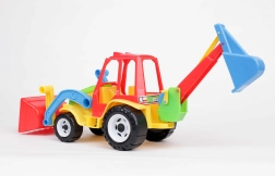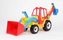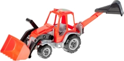 Tento dvoufunkční traktor s bagrem nabízí dětem realistickou stavební zábavu. Díky pohyblivé přední lopatě a zadní bagrovací lžíci mohou přenášet, nakládat a hloubit imaginární materiál. Odolná konstrukce je vhodná pro hraní v interiéru i venku.