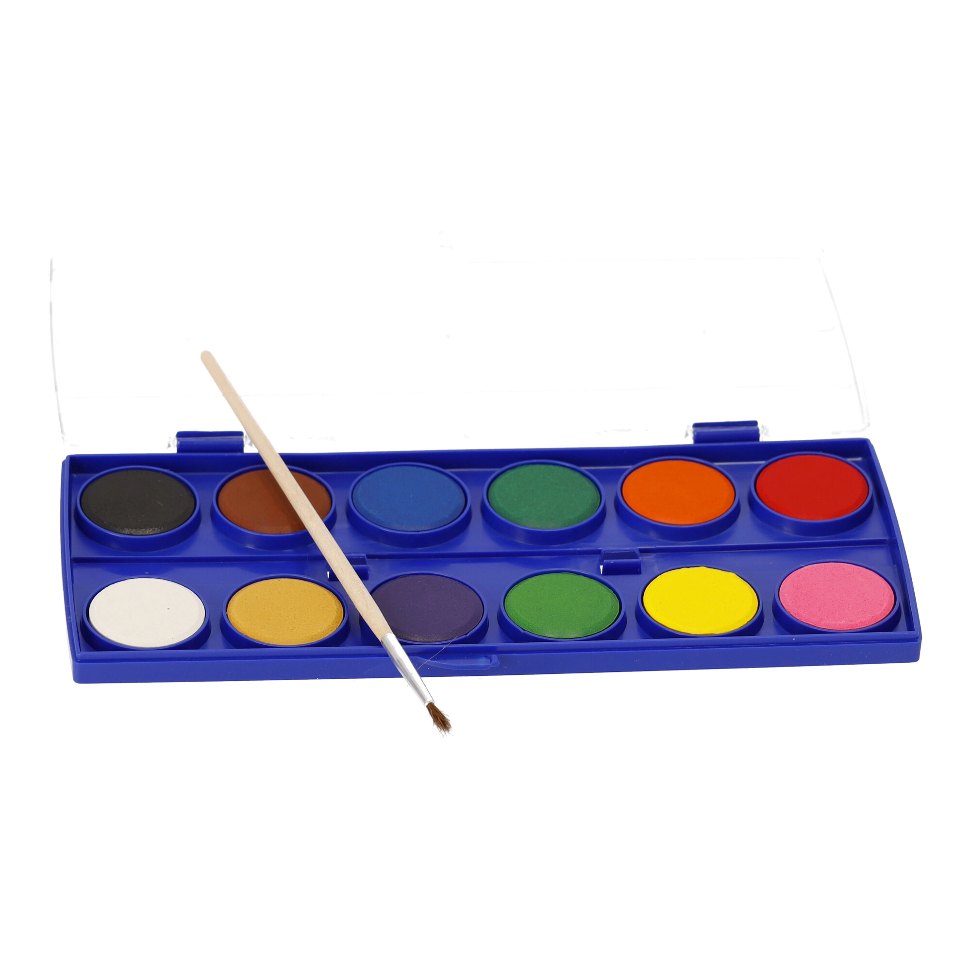 Praktická plastová paleta s průhledným víčkem a přiloženým štětcem umožňuje malovat kdykoli a kdekoli.