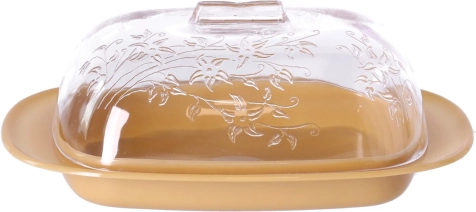 Tato oválná máslenka od výrobce domácích potřeb Lipiecki kombinuje odolnost, snadnou údržbu a atraktivní vzhled. Průhledné víko s decentním květinovým motivem umožňuje rychlou kontrolu obsahu, zatímco těsně přiléhající tvar chrání máslo před cizími pachy a vysycháním.