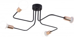 Tato moderní stropní lampa v industriálním stylu kombinuje černou barvu se zlatými akcenty a přináší do prostoru působivý kontrast. Čtyři světelné zdroje na tvarovaných spojích poskytují rovnoměrné osvětlení přibližně 20 m², takže je ideální jako hlavní světlo do prostorného obývacího pokoje nebo jídelny.