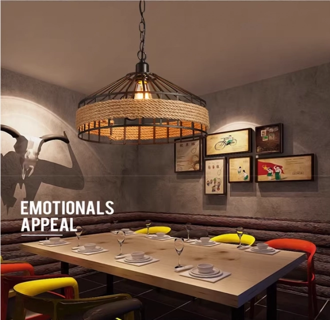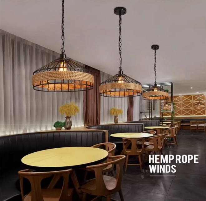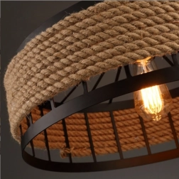 Tato stropní lampa kombinuje vintage styl s moderními detaily a bude perfektní dekorací pro váš obývací pokoj nebo jídelnu, zvláště jako osvětlení nad stolem, lavicí nebo barem. Lampa najde své uplatnění také v moderních restauracích, hotelech, kavárnách a barech díky svému originálnímu designu a pevnému zpracování z kovu a konopného lana. Je zavěšena na ⚓ originálním řetězu a má standardní E27 závit pro žárovku.