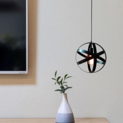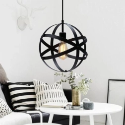 Závěsná lampa Loft je fascinující kombinací černé elegance, která dokonale ladí s mnoha styly interiérového designu. Tento model se vyznačuje originálním designem, kde místo pro žárovku je obklopeno kovovou klecí připomínající vlnité kladivo. Minimalistický design lampy jí dodává lehkost a modernost.