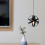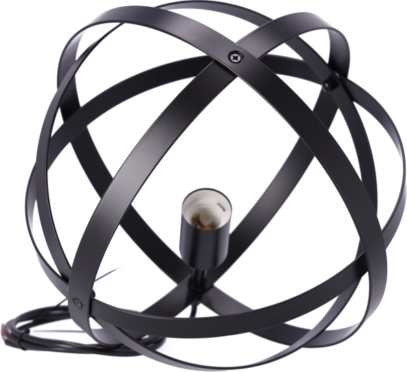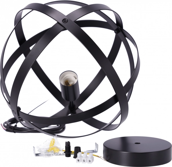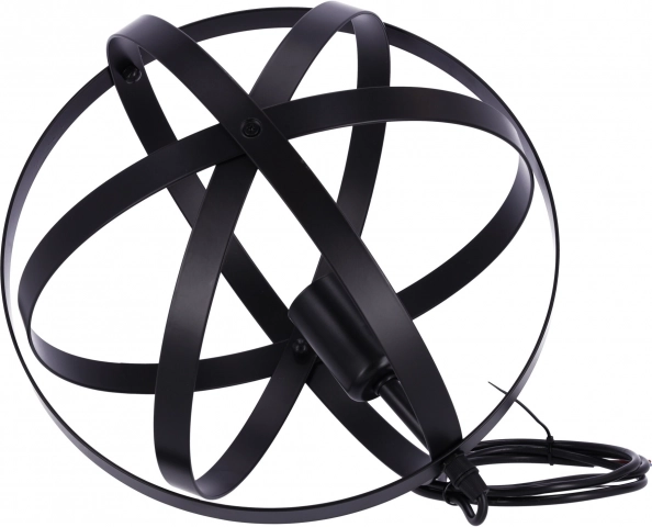 Sférická konstrukce s proplétanými kovovými pásy dodává lampě geometrický a originální vzhled.