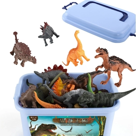 - Figurky dinosaurů (např. T‑Rex, pterosaur, triceratops, tanystroféus), úložný box