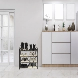 Tento černý kovový botník je ideální řešení pro organizaci obuvi v předsíni, šatně i chodbě. Díky 4 úrovním pohodlně uložíte několik párů bot a využijete tak vertikální prostor bez zbytečného zabírání místa. Minimalistický design skvěle zapadne do moderních i klasických interiérů.