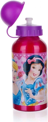 Veselé ilustrace princezen a srdíček v růžových tónech dělají z láhve oblíbený doplněk do školy i na hřiště.