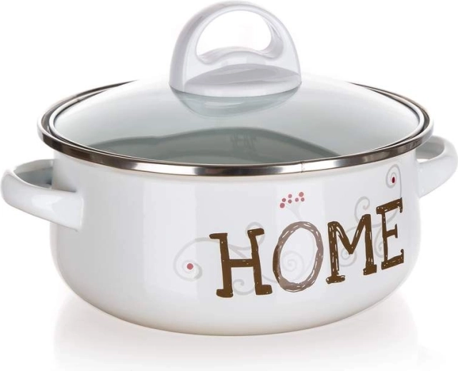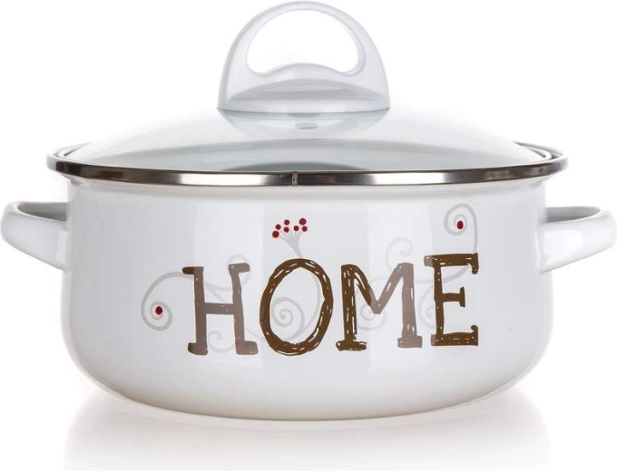 Praktická sada smaltovaných hrnců v bílé barvě s dekorem HOME a skleněnými poklicemi je ideální pro každodenní vaření. Vhodná na plyn, elektřinu, sklokeramiku i indukci, s možností použití v troubě bez poklice. Odolná smaltovaná ocel, pohodlné kovové úchyty a přehledné vaření díky průhledným poklicím. Tloušťka stěny a dna 0,6 mm.
