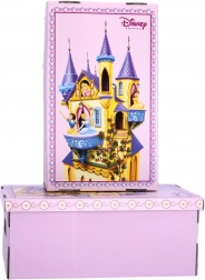 Praktická sada růžových úložných krabic s motivem DISNEY PRINCESS je ideální do dětského pokoje. Poskytne dostatek prostoru na hračky, knížky či drobnosti a díky pevné kartonové konstrukci a úchopovým otvorům se snadno přenáší. Dekorativní víka s pohádkovým zámkem zútulní každý dětský koutek.