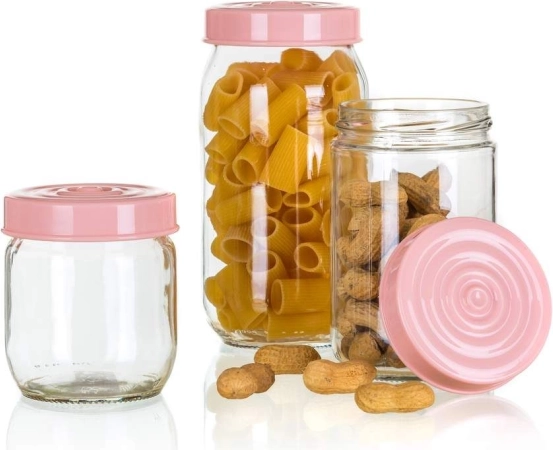 Sada sklenic LINZI přináší elegantní a funkční řešení pro skladování suchých potravin. Tři různě velké dózy s růžovými víčky umožňují snadné třídění a rychlý přehled o zásobách. Čiré sklo je odolné a hygienické, víčko pevně sedí a pomáhá uchovat vůni i křupavost uložených surovin.