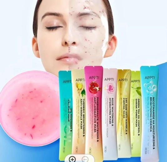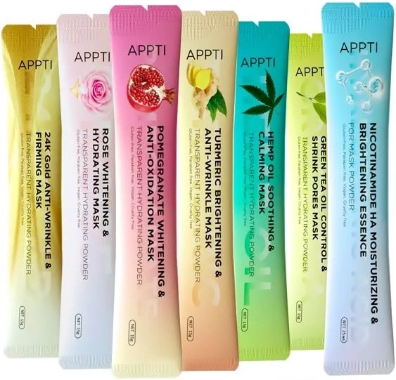 Objevte jednoduchou a účinnou domácí péči s růžovou maskou APPTI. Po smíchání obsahu sáčku s vodou vznikne příjemný gel, který dokonale přilne k pleti, zklidní ji, intenzivně hydratuje a podpoří její rozjasnění. Maska je vhodná pro všechny typy pleti včetně citlivé.