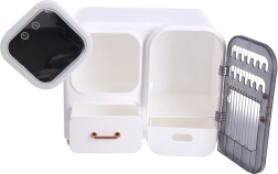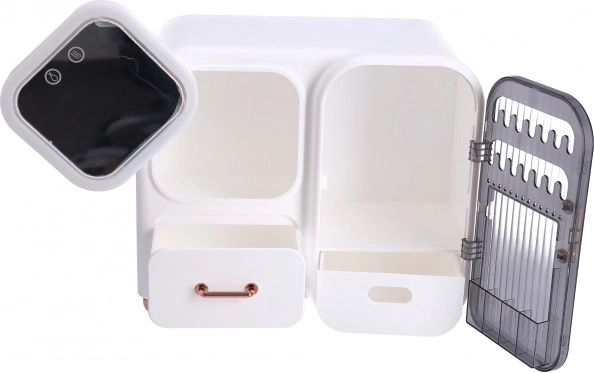 Tento elegantní organizér nabízí hluboké úložné prostory, které umožňují přehledné skladování kosmetiky a šperků. Zásuvky jsou obzvlášť prostorné a umožní ukládat denní kosmetiku jako jsou krémy, make-up či rtěnky.