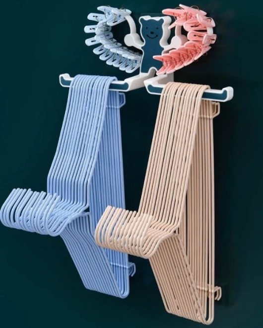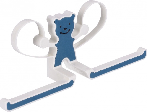 Multifunkční věšák s medvídkem v modro-bílém provedení je skvělým pomocníkem pro přehledné uložení každodenních potřeb. Horní část je ideální pro kolíčky na prádlo, sponky do vlasů a drobné doplňky, zatímco spodní příčky snadno ponesou ručníky, toaletní papír, malé věšáky či šátky.