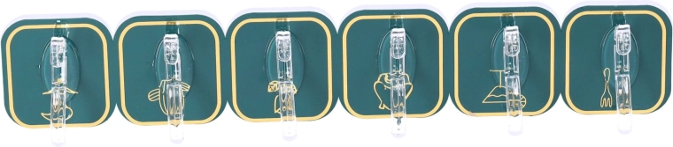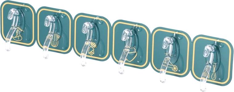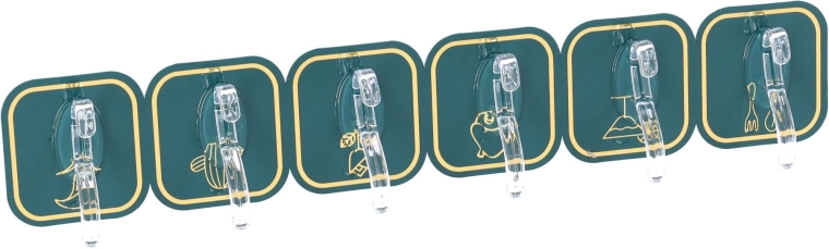 Průhledný háček na tmavě zeleném čtvercovém podkladu s jemnými detaily se hodí do moderních interiérů.