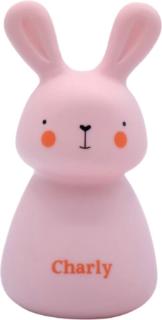 Roztomilá dětská noční lampička Olala Charly ve tvaru růžového králíčka přináší jemné, uklidňující světlo pro klidné usínání. Je bezdrátová, bezpečná pro děti od 0+ a díky indukčnímu nabíjení nabízí až 12 hodin provozu po pouhých 3 hodinách nabíjení. Ideální na noční stolek, do postýlky i na cestu na toaletu.