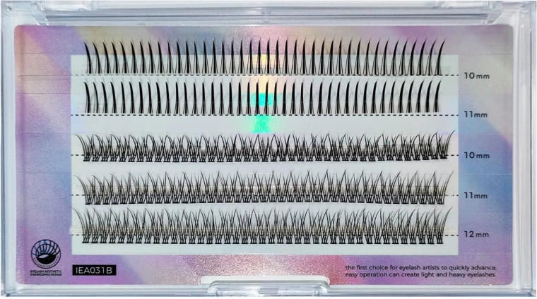 V balení naleznete mix délek 10–12 mm a dvě varianty natočení, takže snadno dosáhnete přesně takového výsledku, jaký si přejete – od decentního po výrazný. Tloušťka 0,15 mm poskytuje přirozené zahuštění, které je vhodné pro celodenní nošení.