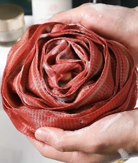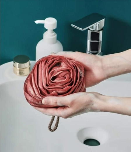 Po náročném dni si dopřejte dlouhé chvíle relaxace s naší houbou a připadejte si jako v luxusních lázních. Krásná houba ve tvaru květu růže jemně čistí pokožku a dodává jí svěžest. Během používání jemně masíruje pokožku, důkladně rozvádí koupelovou kosmetiku a vytváří velkou, hustou pěnu. Jemný materiál je bezpečný pro styk s pokožkou.