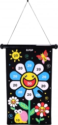 Bezpečná, oboustranná magnetická hra se šipkami přináší spoustu zábavy pro děti i dospělé. Hra spočívá v přesném házení šipek na označené body na desce. Sada obsahuje 6 magnetických šipek ve třech barvách: bílá, žlutá a červená. Černá textilní deska je vyzdobená barevným květem, který napomáhá cvičení zručnosti a koncentrace. Funkce srolování desky usnadňuje její skladování a přepravu.
