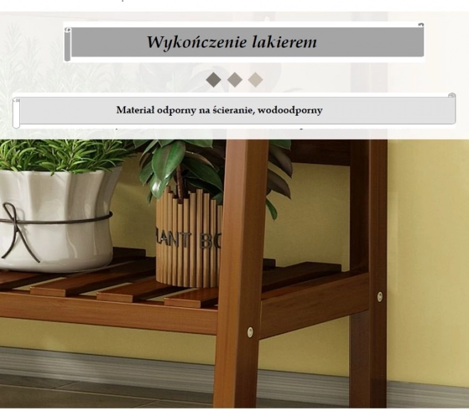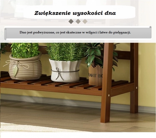 Odolné provedení a nadčasový přírodní vzhled se hodí do moderních i klasických interiérů. Stojan je praktický a multifunkční – poslouží jako květinová etažérka, ale také jako police na knihy a dekorace, čímž podpoří pořádek i styl vašeho domova.