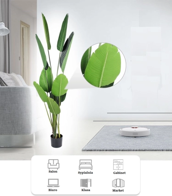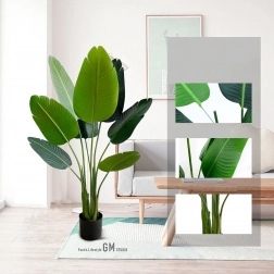 Dodejte svému interiéru svěží vzhled s touto umělou dekorativní rostlinou o výšce 120 cm v elegantním květináči. Nabízí realistické listy s výraznou strukturou, které věrně napodobují tropické listy banánovníku či strelicie. Je bezúdržbová, nevyžaduje zálivku ani slunce a perfektně se hodí do obýváku, ložnice i kanceláře.