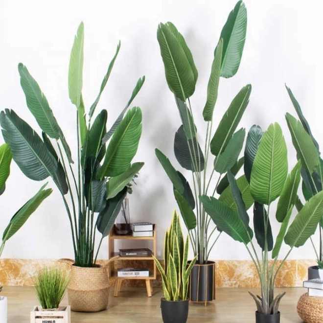 Detailně tvarované a žilkované listy působí na první pohled jako skutečné tropické rostliny a dodají prostoru luxusní akcent zeleně.