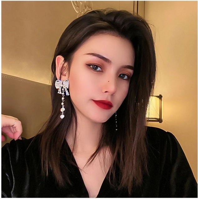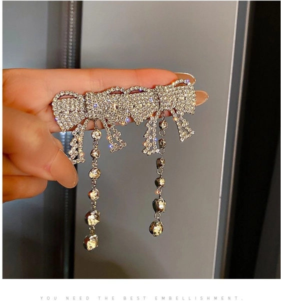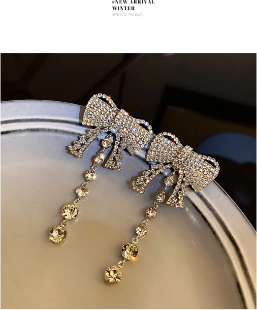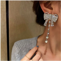 Náušnice ve tvaru mašle s visícími krystalky přidají elegantní a sofistikovaný vzhled každému outfitu.