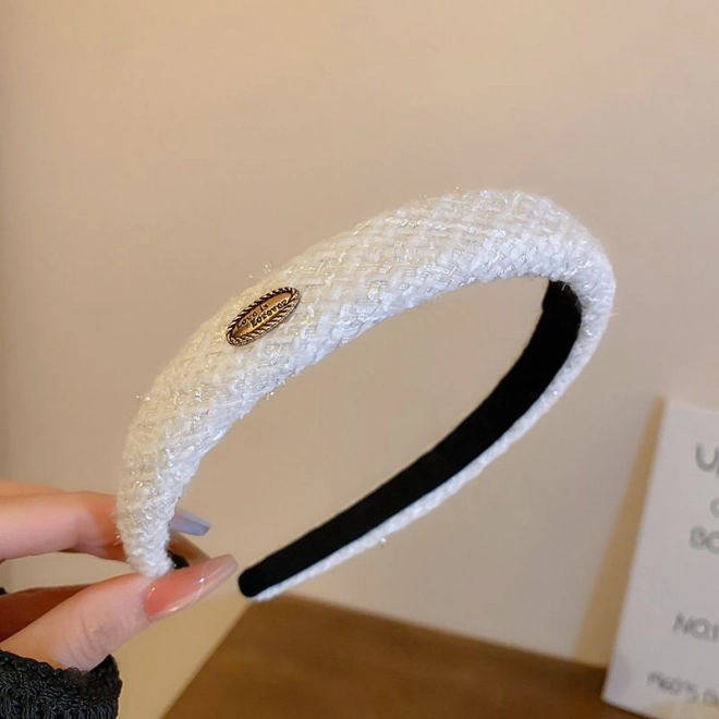 Elegantní bílá čelenka s pletenou strukturou je stylová a praktická ozdoba do vlasů. Dodá účesu jemný šik, udrží pramínky mimo obličej a skvěle se hodí k běžnému nošení i slavnostním příležitostem.
