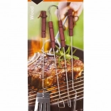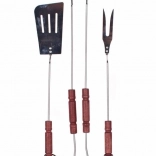 Třídílná sada grilovacího náčiní obsahuje kleště, obracečku a vidličku z chromované oceli. Rukojeť je vyrobena ze dřeva. Sada obsahuje základní nářadí potřebné pro grilování. Nářadí je opatřeno závěsným okem.