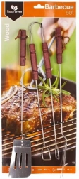 Tato univerzální sada náčiní na grilování kombinuje pevnost kovu a příjemný úchop dřeva, aby bylo otáčení, přenášení i servírování vašich oblíbených pokrmů maximálně pohodlné. Díky nerezové oceli jsou nástroje odolné vůči teplu a korozi, zatímco ergonomické dřevěné rukojeti zajišťují bezpečný a komfortní úchop.