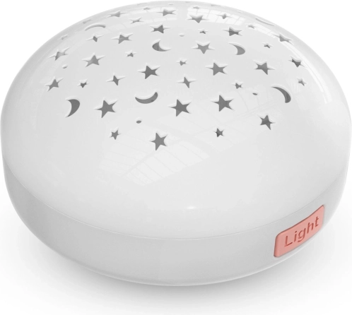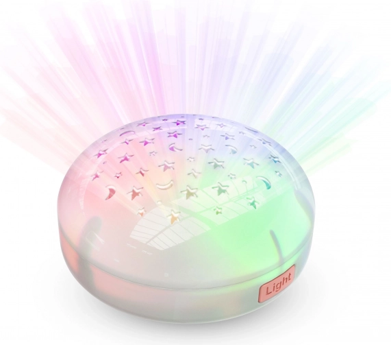 Dlouhotrvající bílý šum a uklidňující tóny doplněné o barevnou projekci podporují usínání a tlumí rušivé podněty. Senzor pláče automaticky reaguje na probuzení miminka a znovu spustí zvuk, aby se dítě rychleji zklidnilo.