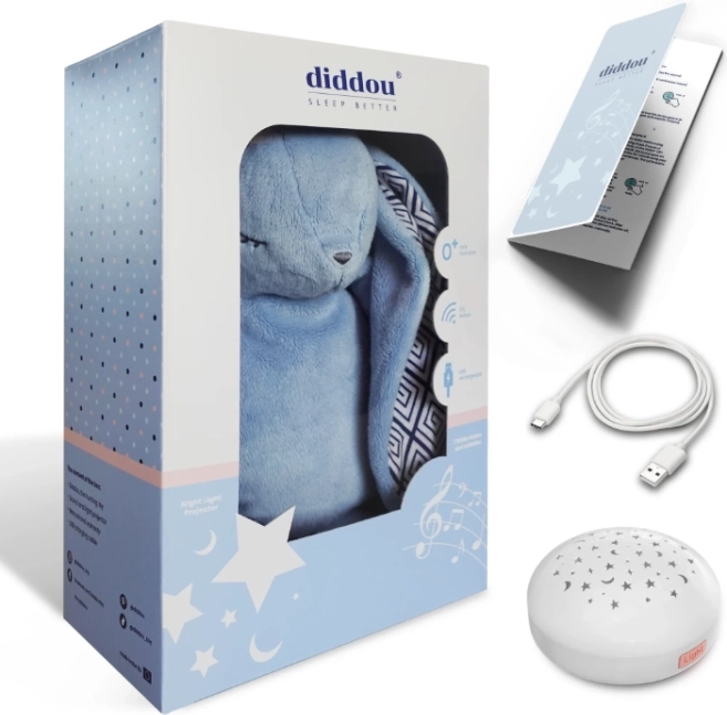 Přítulný zajíček Diddou je navržený pro jemné uspávání a pohodu v dětském pokojíčku. Měkké plyšové provedení láká k mazlení, zatímco integrované světlo a zvuk vytváří příjemnou atmosféru pro spánek. Modul můžete mít uložený v bříšku hračky, nebo jej vyjmout a používat samostatně jako noční světlo s projekcí hvězd a měsíčků.
