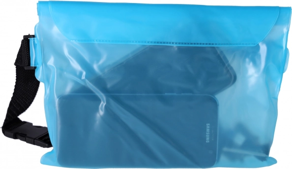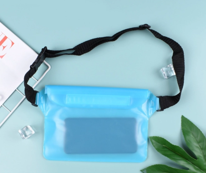 Praktická a stylová voděodolná ledvinka ve světle modré barvě chrání váš telefon, doklady, klíče i hotovost před vodou a pískem. Díky transparentnímu materiálu umožňuje ovládání dotykové obrazovky, má nastavitelný popruh a bezpečné uzavírání na suchý zip. Ideální na pláž, bazén i vodní sporty.