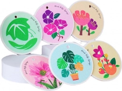 Tyto kulaté papírové štítky s botanickými ilustracemi jsou ideální pro dekoraci nebo označování. Umělecký design květin a listů dodává estetickou přitažlivost a funkčnost.