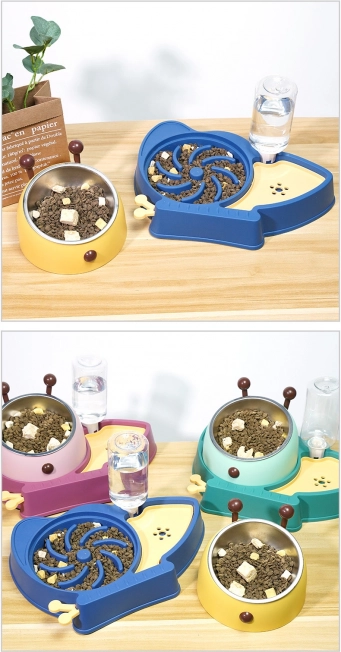Tato kombinovaná miska se zpomalovačem krmení využívá labyrint drážek, které prodlužují dobu příjmu potravy a pomáhají předcházet hltání, nadýmání či zvracení. Ergonomický tvar a hladké povrchy usnadňují každodenní údržbu a miska je vhodná pro kočky i malé psy.