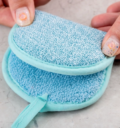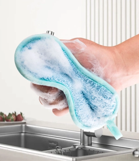 Dvoustranná kuchyňská houbička – modrá je praktický pomocník pro všestranné čištění domácnosti. Hrubá strana účinně odstraní zaschlou mastnotu a nečistoty, zatímco měkká strana šetrně setře zbytky a zanechá povrchy čisté a lesklé. Díky ergonomickému tvaru se pohodlně drží a práce s ní je rychlá a pohodlná.