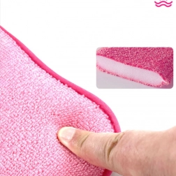 Tato praktická růžová houbička kombinuje dvě účinné textury pro maximální výsledky při úklidu. Drsná strana si poradí s připáleninami a zaschlou špínou, zatímco jemná strana je šetrná k citlivým povrchům a zanechá je dokonale čisté a bez šmouh. Díky pohodlnému tvaru a smyčce na zavěšení ji snadno uchopíte, vyždímáte a necháte rychle vyschnout.