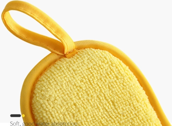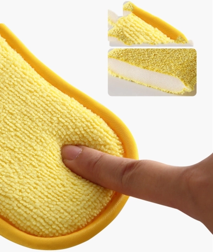 Oboustranná žlutá houbička je univerzální pomocník pro kuchyň, koupelnu i auto. Roubustní abrazivní strana si poradí s připáleninami a zaschlou špínou, zatímco jemná pěnová strana je ideální na každodenní setření a lesk bez rýh. Díky ergonomickému tvaru se dobře drží a usnadňuje přesné čištění rohů a hran.