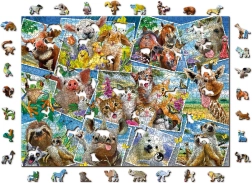 Hotové puzzle tvoří živou mozaiku zvířecích portrétů, která ozdobí každý interiér a připomene radost ze skládání.