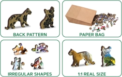 Tato prémiová dřevěná skládačka „Pohlednice se zvířaty“ přináší originální zážitek pro celou rodinu. Díky přesnému laserovému výřezu mají dílky hladké hrany a některé jsou záměrně vyřezány do tvaru zvířat, budov a objektů, což dodává skládání další rozměr. Oboustranný potisk umožňuje skládat jak podle obrázku, tak podle vzoru na zadní straně.