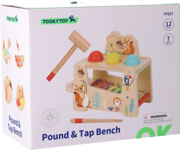 - 2v1: zatloukací lavice + hudební nástroj (xylofon a činel) pro dvojitou porci zábavy.