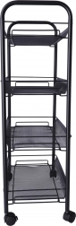 Díky čtyřem kolečkům je regál snadno přemístitelný, což je vynikající pro ty, kteří potřebují flexibilitu v uspořádání prostor. Vyroben z vysoce kvalitního kovu, který zajišťuje dlouhou životnost a stabilitu.