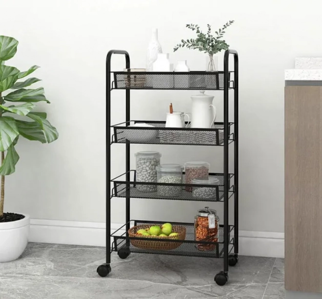 Multifunkční regál je ideální pro maximalizaci úložného prostoru ve vašem domově. Jeho čtyři prostorné police umožňují uskladnění potravin, nádob a čisticích prostředků v kuchyni nebo kosmetických a hygienických produktů v koupelně.