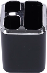 Praktický kelímek s více přihrádkami udrží kartáčky, pastu i drobnosti přehledně na jednom místě. Kovový akcent a lesklý povrch doplní moderní koupelny a usnadní údržbu.